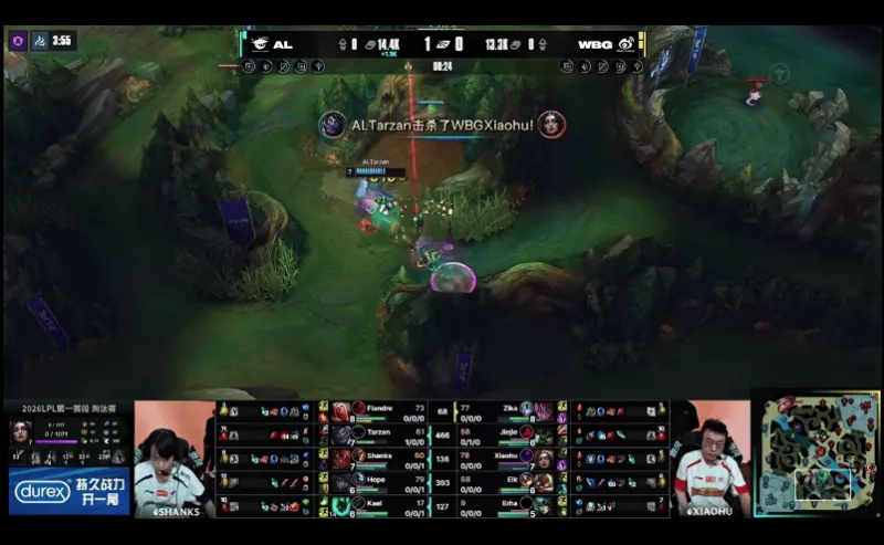 12分钟,掀桌!WBG下路果断出手打出0换3随后拿龙