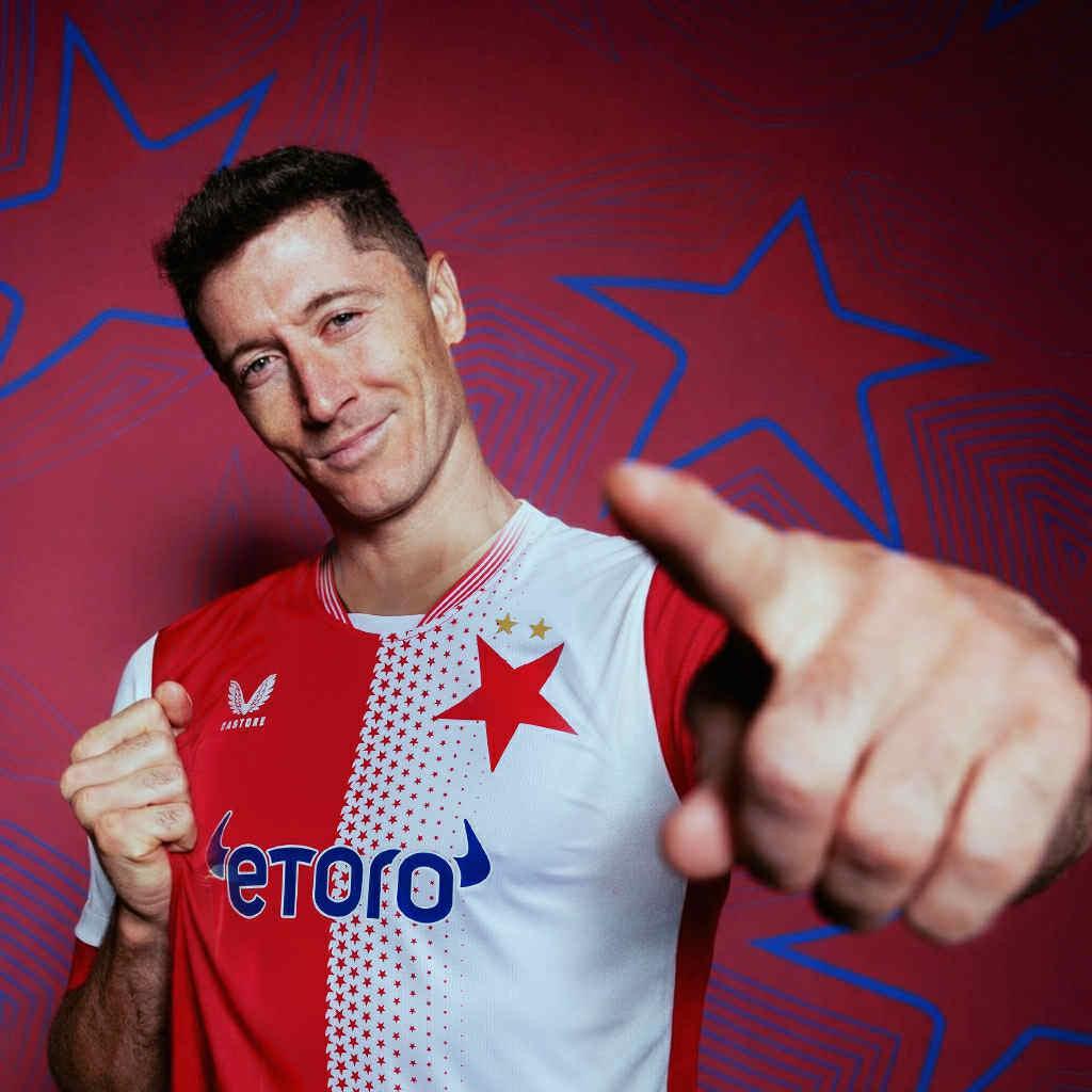 随后布拉格斯拉维亚又发了一张P好的莱万身穿布拉格斯拉维亚球衣的照片:“这才像话。”