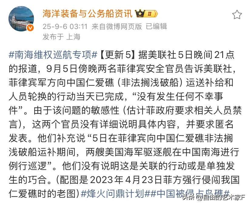 最后一刻认怂,菲方宣布:已完成仁爱礁补给,“没发生不幸事件”